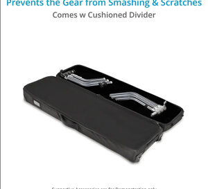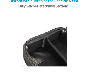 Il divisore imbottito rimovibile e le cinghie di fissaggio mantengono l'attrezzatura in posizione e impediscono che si urtino e si graffino.