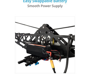 L'alimentazione a batteria integrata consente di lavorare senza problemi per 20-25 minuti con un carico utile fino a 10 kg ed è facilmente rimovibile senza disturbare il flusso di lavoro.