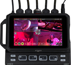 AtomX CAST è un compagno modulare per il monitor-registratore Atomos Ninja V. Utilizza la porta di espansione AtomX sul Ninja V per trasformarlo in uno switcher multi-ingresso avanzato.